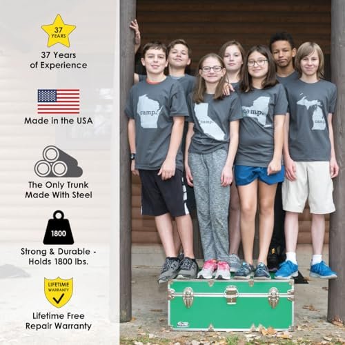 C&N Footlockers Large Undergrad Storage Trunk is a great product Made in the USA it’s a durable steel footlocker with a lid stay that keeps it open when you need it to be the wheels make it easy to move around and the size is perfect for storing and transporting gea