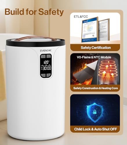 • [ Multi-Layered Safety Protection ] Evenchic Towel Warmers certified with dual international certifications (ETL & FCC), core components meet strict safety standards. Paired with a V0-grade flame-retardant shell and NTC Heating Module, it resists high-temperature deformation and precisely controls temperature to prevent overheating. It is also equipped with a child lock to avoid accidental touch, balancing safety and energy efficiency.