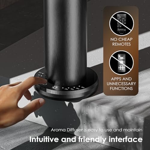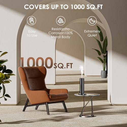 It effortlesly covers up to 1,000 sq. ft., making it ideol for open-plan living rooms or large master suites. The sleek black finish is madearn and discreet, blending perfectly with any decor. With intuitive timer settings and whisper-quiet operation, it provides a consistent, luxurious aroma that truly transforms the ambiance of your space.